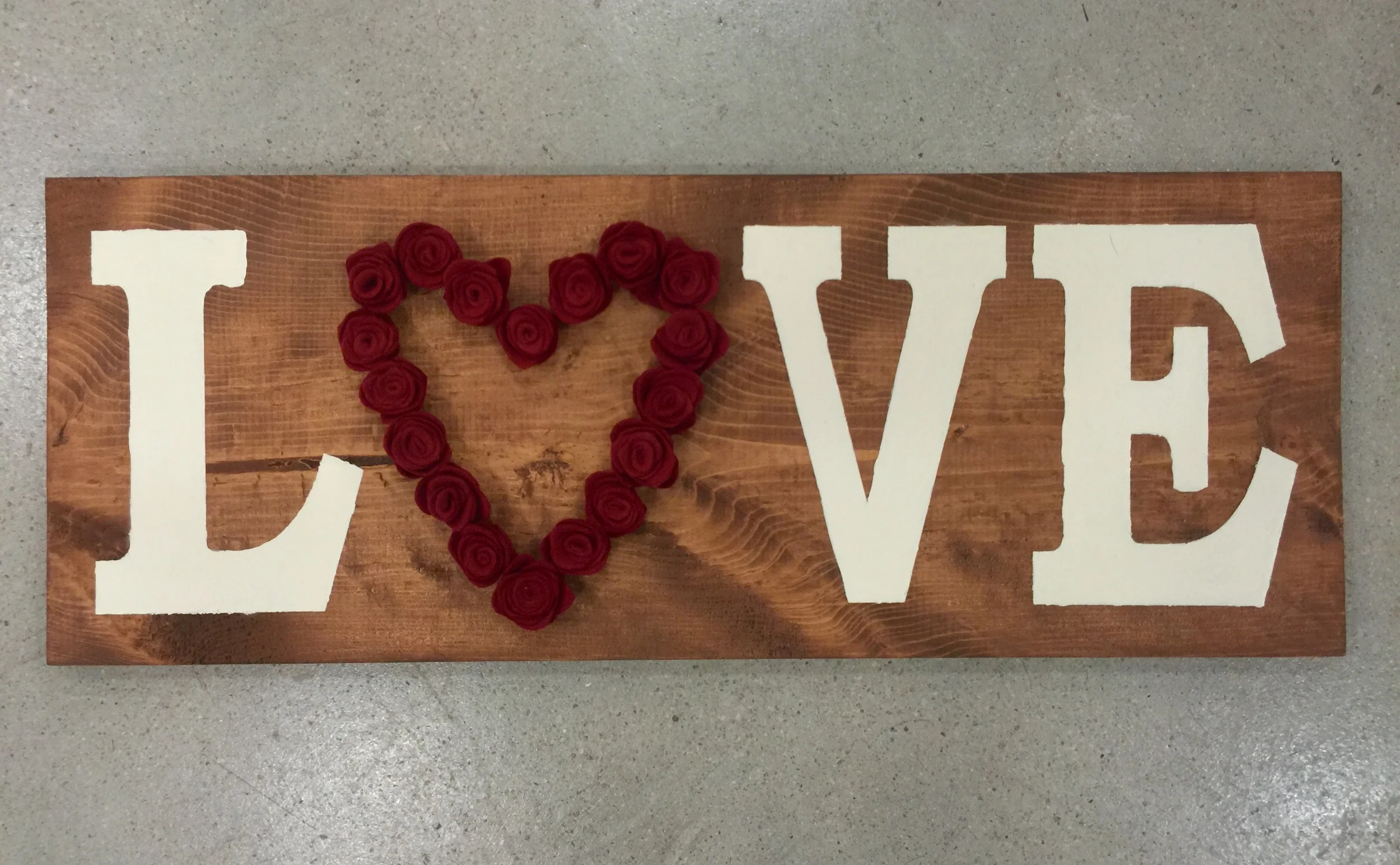 LOVE Sign - You have the option to make the 'O' out of felt flowers shaped into a heart. You can also choose to make the word HOME instead.