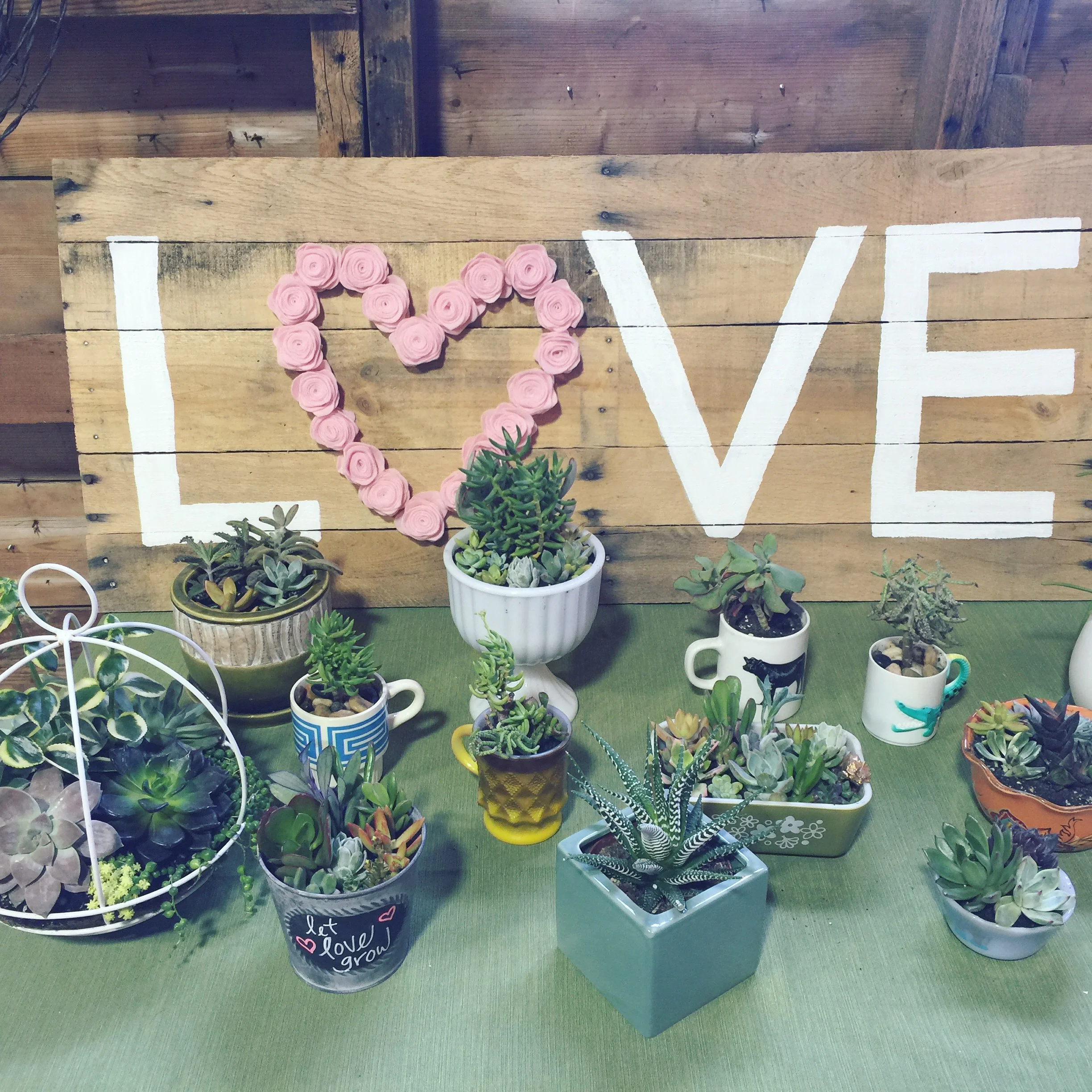 Stop by anytime between 2pm and 8pm to create your own personalized, potted succulent. Our succulent bar will be fully stocked (and re-stocked throughout the afternoon!!) with a large variety of containers/pots, succulents, colored rocks, fairy garden decor, decorative elements and garden signs for you to personalize, and of course, soil! We will also have barnwood planters and terrariums available.