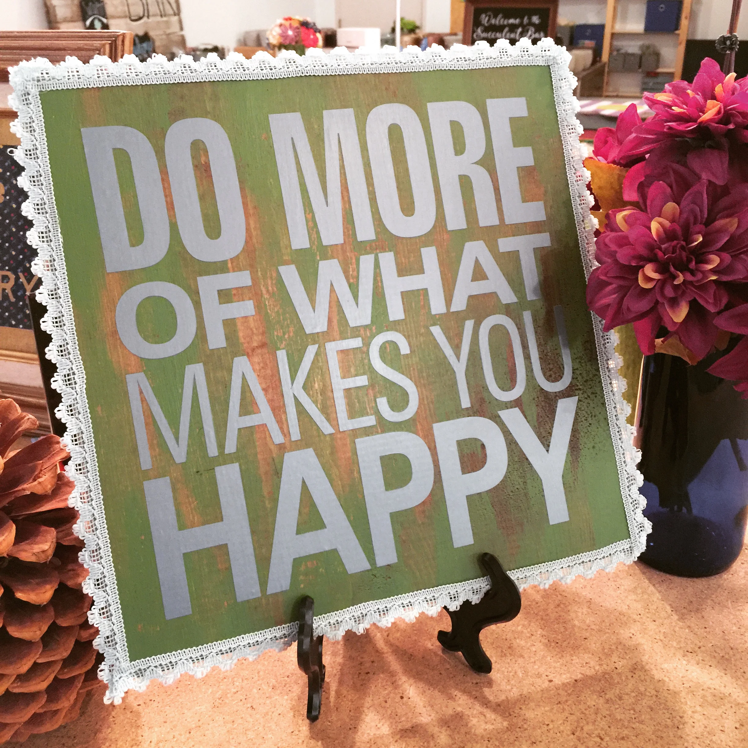 Tonight we'll introduce you to our two secret weapons.....Mod Podge and a Silhouette machine! :-) To make this cute piece of home decor we will adhere pre-cut vinyl onto a pre-stained wooden plank. You have the option to paint the background of your board prior to transferring the lettering. We have several quotes for you to choose from in the menu below. After we adhere the lettering you can choose some felt flowers or wooden shapes to adhere to your sign. Signs are 12"x18" or 12"x12" depending on how your quote is formatted.